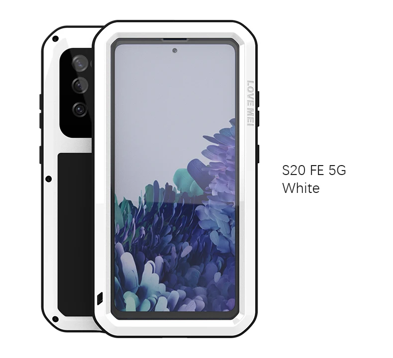 LOVE MEI Compatible for Samsung Galaxy S20 FE 2020 Case, Aluminum Metal Gorilla Glass Shockproof Military Heavy Duty Sturdy Cover