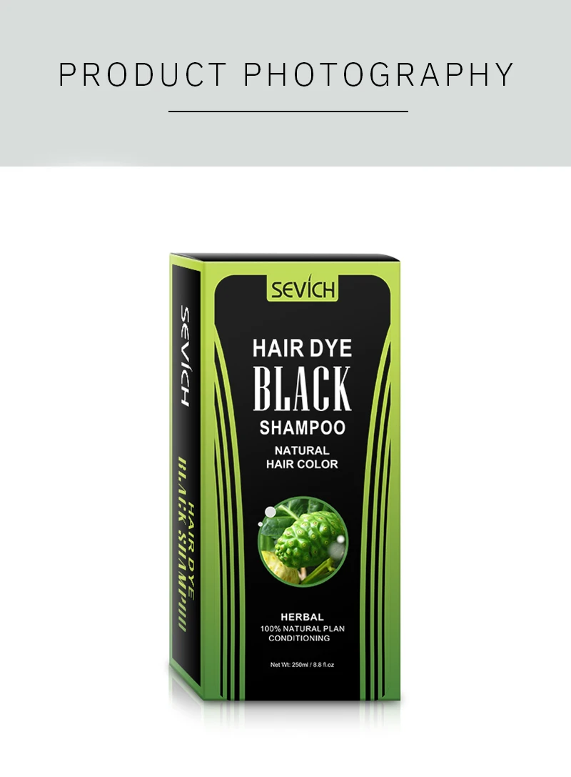 Sevich Natural organic Fast Hair Dye Shampoo Black Hair Shampoo White Grey Hair Cover Up Plant Essence Hair Color Product 250ml