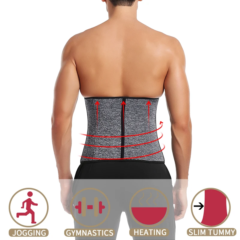 Color:Black/Grey Size:S/M/L/XL/2XL/3XL Effect:Make you sweat more easily in sports. Bones:6 Pieces Spiral Steel Bones Closure:Hooks and Zipper Fits perfect:Fit to the waist, avoid curling, slipping Warehouse Location:China,United States Excellent Construction & Materials - Made of high-quality fabric, Shell: 100% Polyester; Lining: 100% Neoprene, smooth, feels comfortable, snug fit, can be worn inside and outside, good elasticity, not easy to wrinkle, giving you a more natural look and shape. Besides, sturdy and durable sewing promise the waist trimmers' quality and durability. OUTSTANDING Brand New Design -The abdomen double-layer compression design and widen design is wider than generic items, more area covered, more calories burned, more sweat comes, makes the abdomen effect more obvious. Waist Trainer And Back Support - Our neoprene waist trainer corsets, which built-in 6 STEEL BONES not only snug fit and pressure your waist, but also protect the ribs from hurt, provide enough support for back pain relief and correct your posture. It is the best fitness equipment for all kinds of exercises in the gym. The Effect Is More Remarkable - The Men Workout Waist Trainer has excellent performance in burning fat. It helps you sweat to eliminate toxins, accelerate calorie burning process, tummy control, weight loss, and promote postpartum waist recovery. Maintain muscle warmth and support to prevent fatigue and injury after exercise.