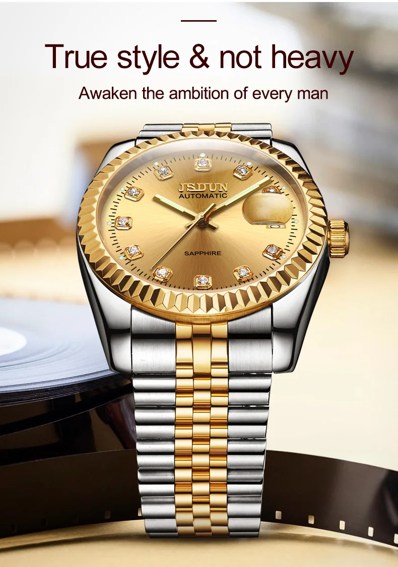 Men Mechanical movement Set Automatic Self-wind Stainless Steel Sapphire Watch - 200033142 gold and siliver / United States Find Epic Store