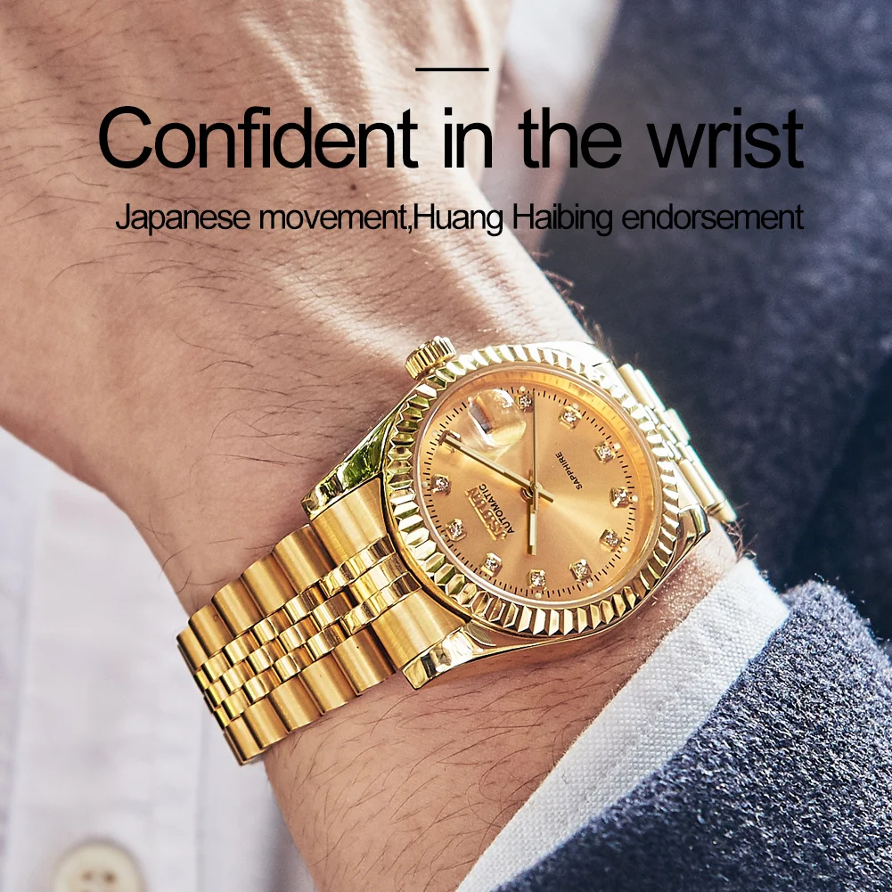 Men Mechanical movement Set Automatic Self-wind Stainless Steel Sapphire Watch - 200033142 full gold / United States Find Epic Store
