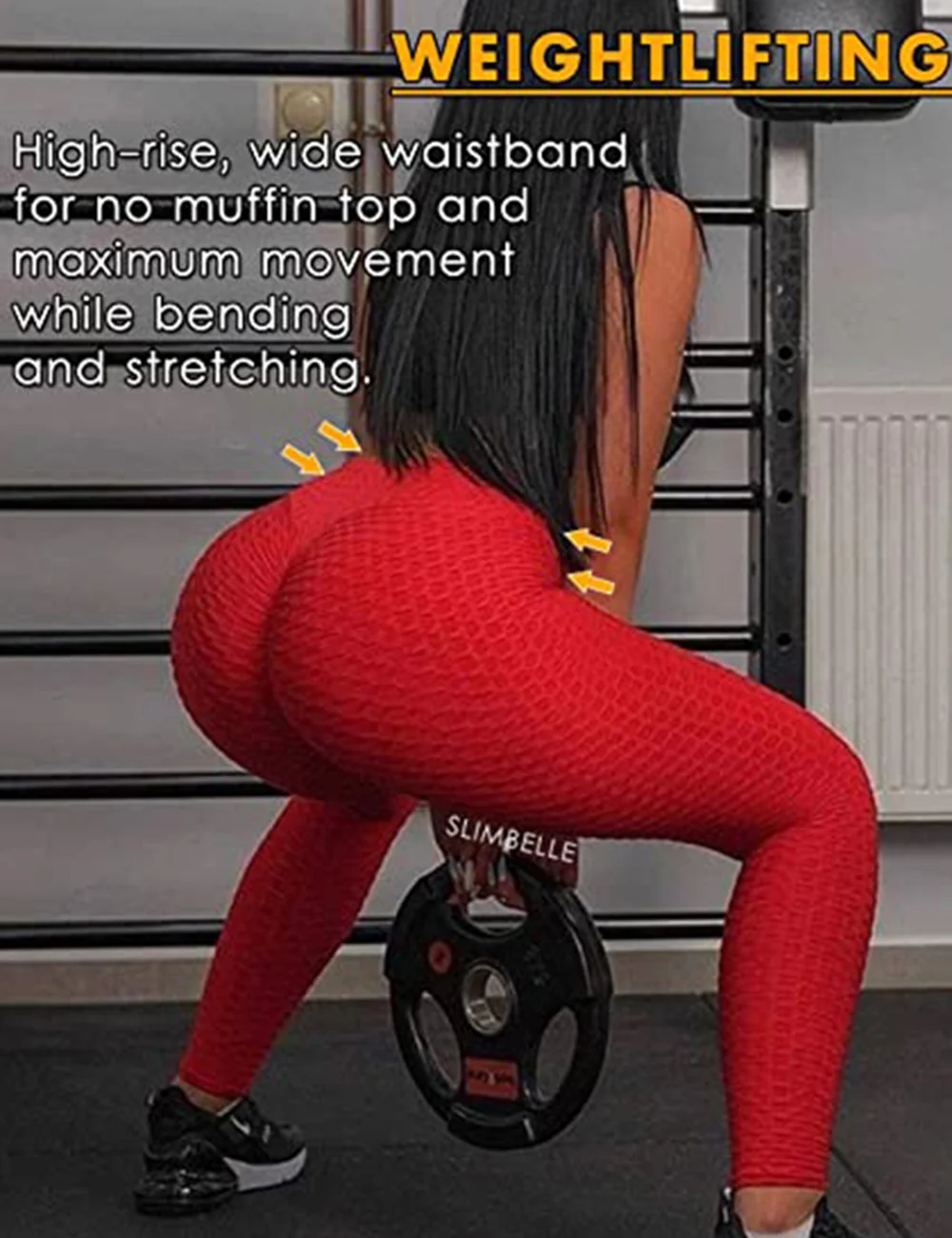 Leggings6: Tummy Control Leggings Stretchy Textured Booty Gym Workout Tights