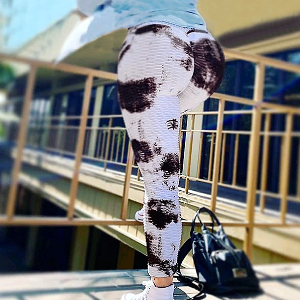 Women's Ruched Butt Lifting Yoga Pants High Waist Tummy Control Push Up Workout Leggings Textured Booty Tights - 200000614 Blue White / S / United States Find Epic Store