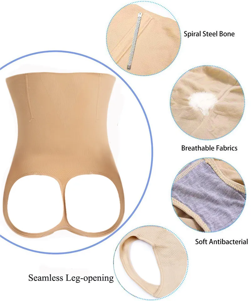 Material: nylon+ spandex color: black+ beige size: S-XXXL Features: ① High waist and flat angle design: double -layer design of the front film, strengthen the abdomen closure ② Lowing PP hip lifting design: hip -lifting body, highlighting the hip curve ③ High bomb ventilation, light and thin invisible material ④ 2 spiral steel bone design: fixing the waist mouth and no curls