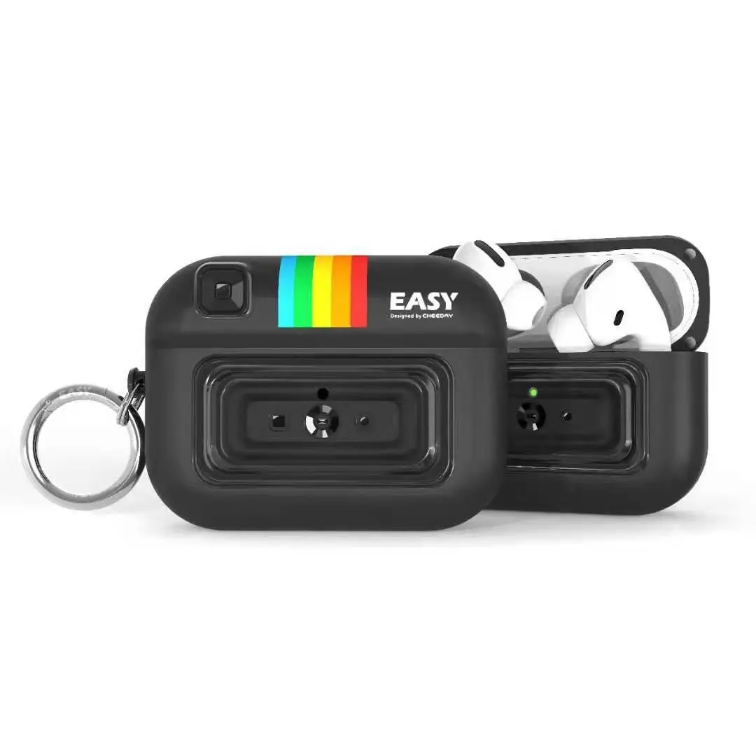 Magnetic Cover for Airpods Pro Case Cute Cartoon Camera Design with Keychain Silicone Rugged ArmorFull-Body for AirPods 1 2 Case