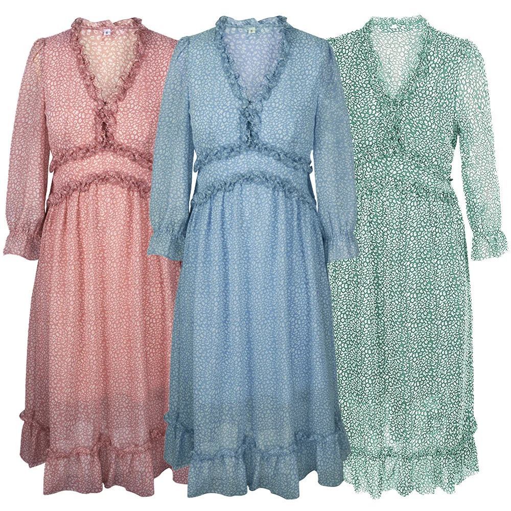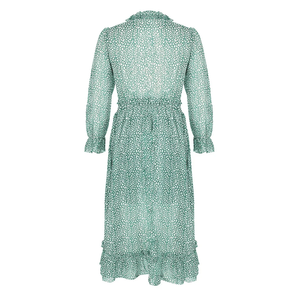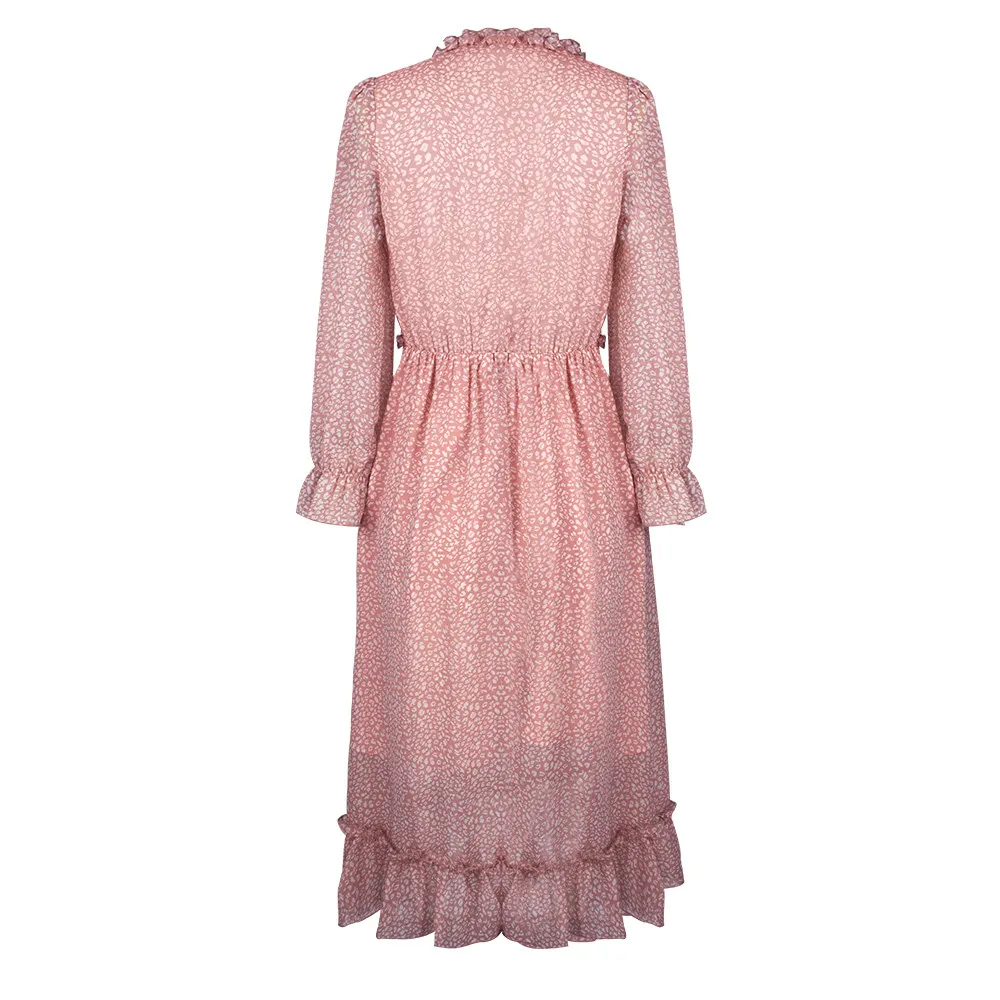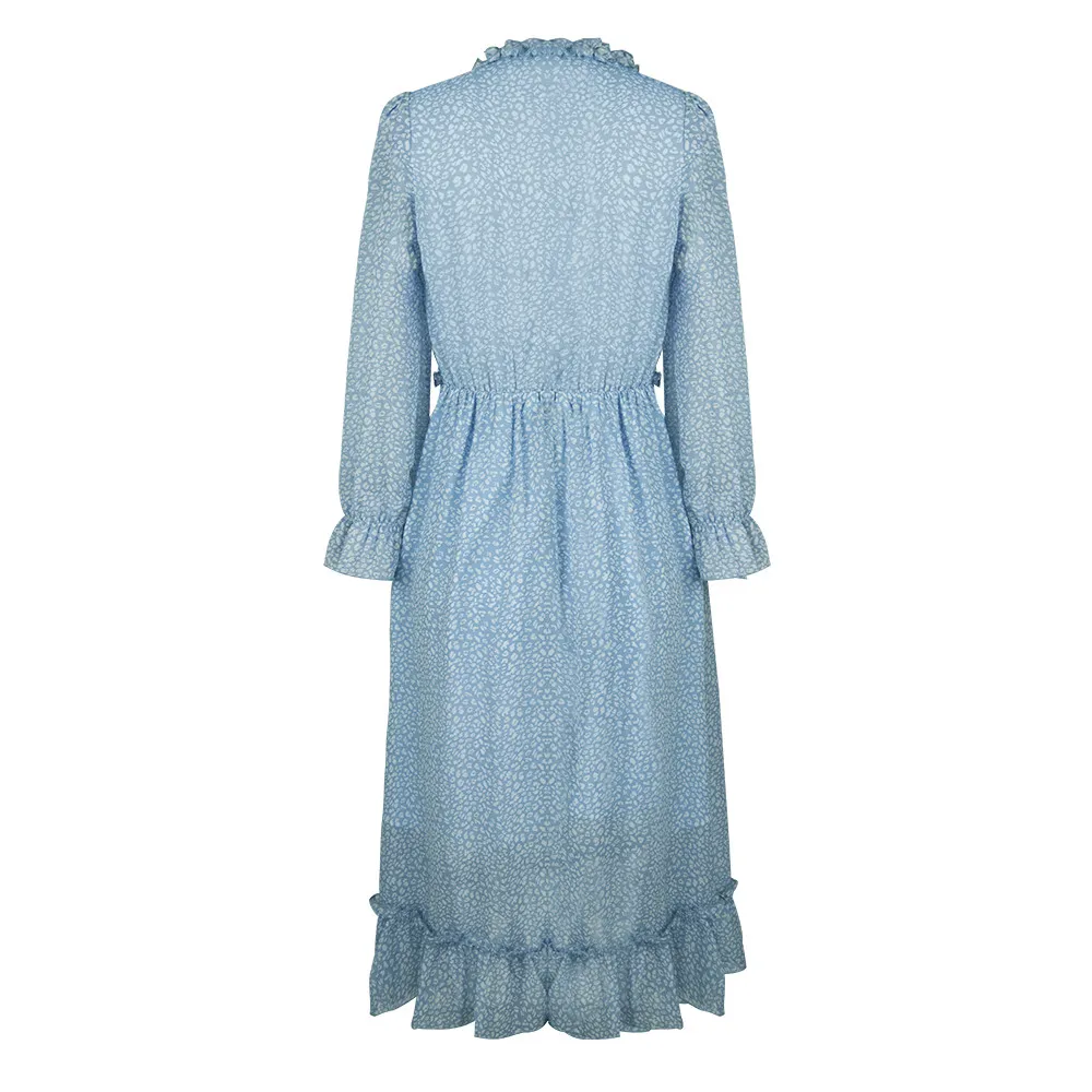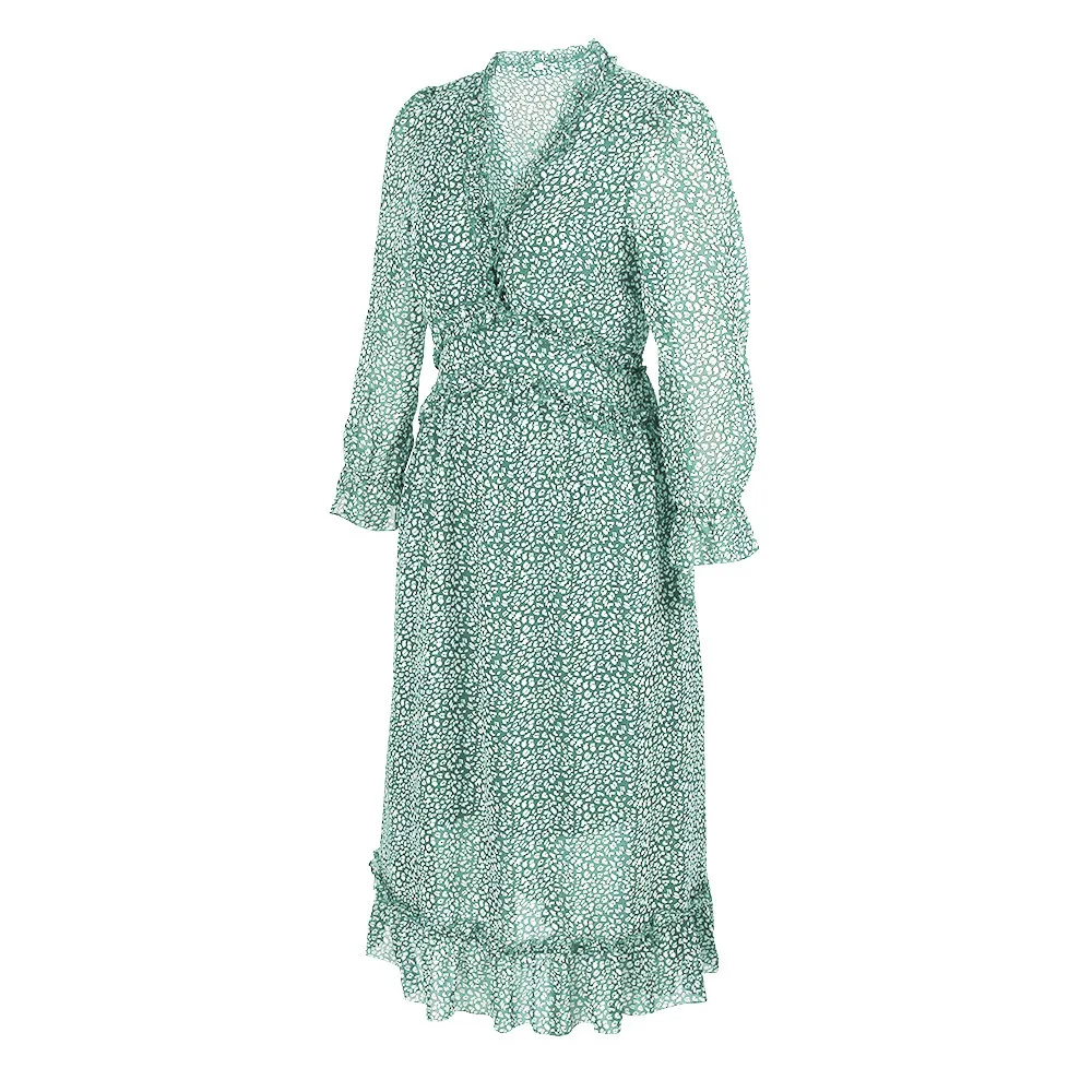 Women's V-Neck Sexy Long Sleeve Ruffle Layer Flowy Swing Midi Dress