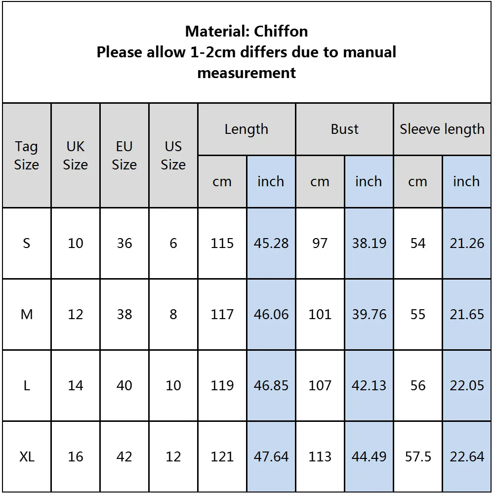 NOTICE: Long sleeve dress is on sale. Please refer to our size chart for choosing your most suitable one.