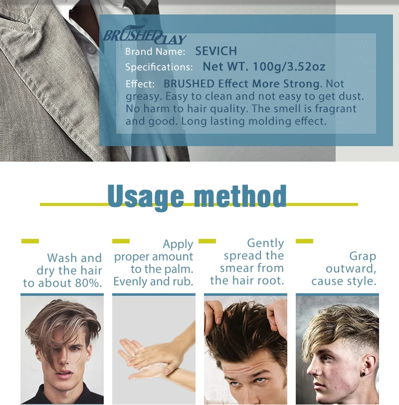 1. disposable, natural styling without stiff. 2. light, portable and convenient. 3. enduring and fragrant. 4. easy to use, easy to wash. 5. no damage to hair and no stickiness. Usage: Apply proper of it on palm, smear and rub on hair root, leaving hair fluffy. The breezing style and meticulous care texture sense can be made.