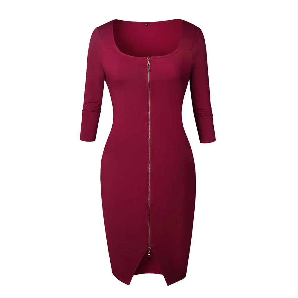 Women Front Zip Cocktail Bodycon Dress - 200000347 wine red / S 1 / United States Find Epic Store