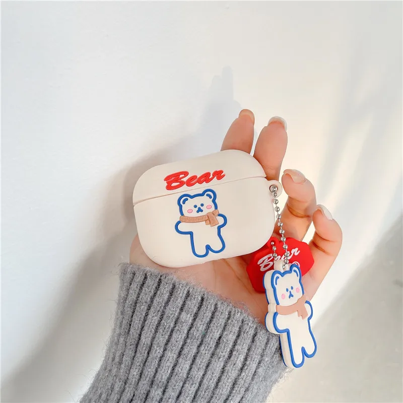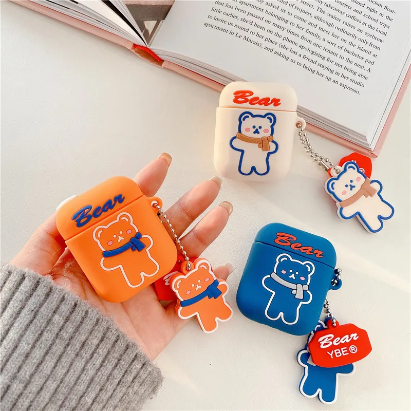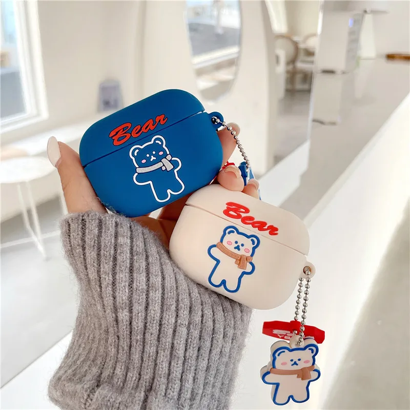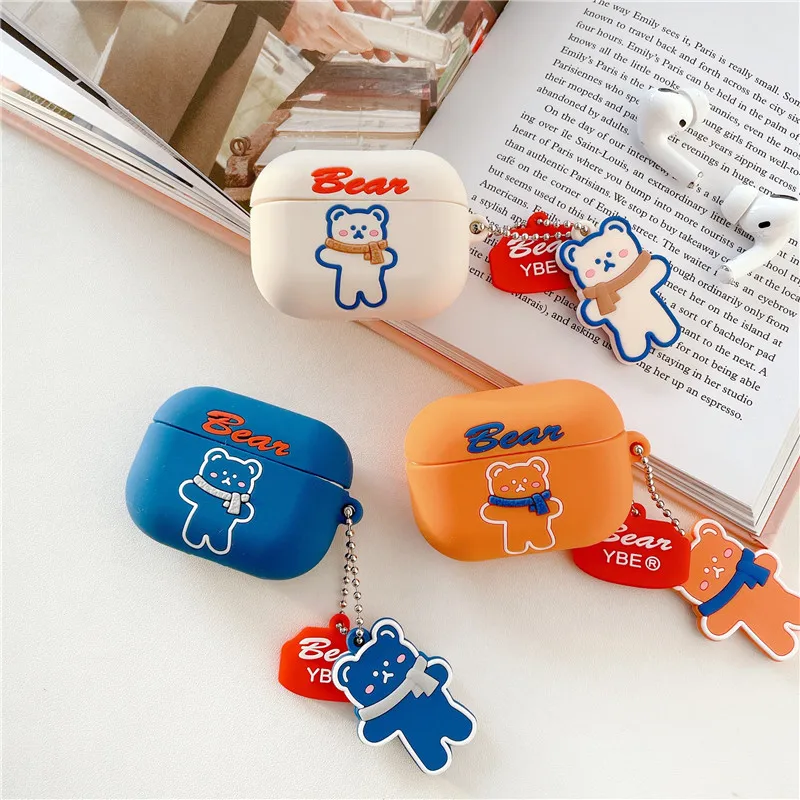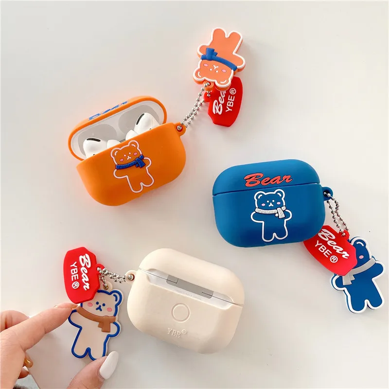 Silicone For airpods pro new three-dimensional scarf bear cartoon Cute Accessories headset cover for Apple AirPods Pro 2 1 Case