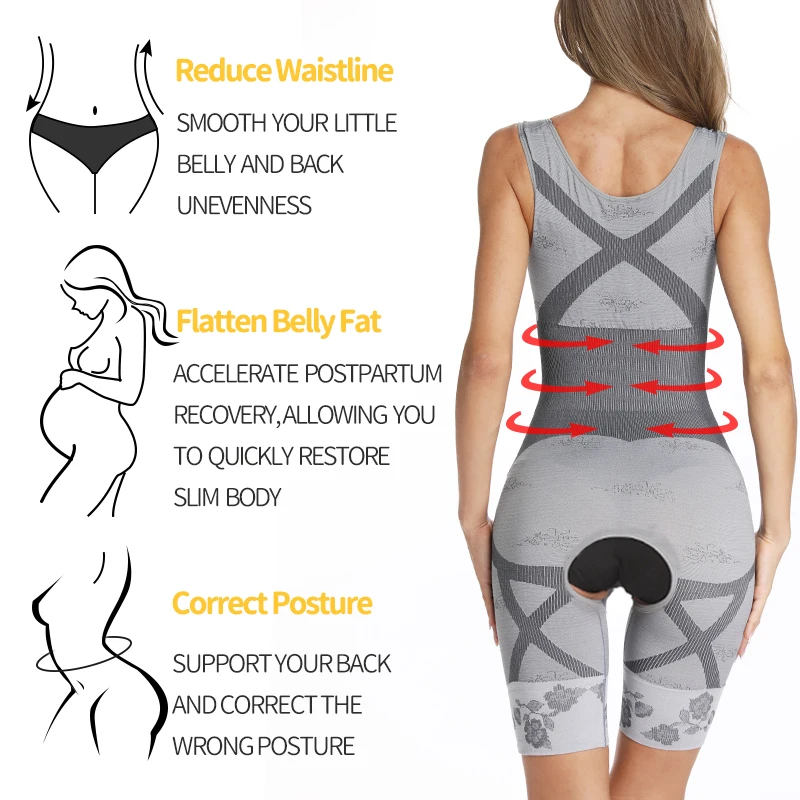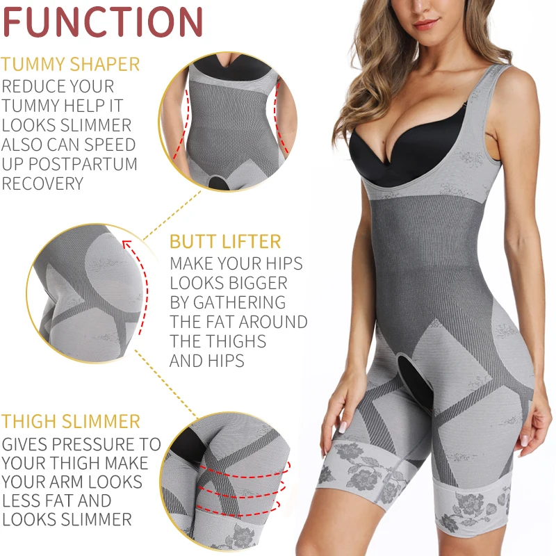 Color: Grey/Black/Beige Material:Polyester31.5%,Spandex15%,Nylon53.5% Size(Asian):S&M,L&XL,2XL&3XL Reshape Curves: Trim the waist, back, hips, and thighs body curve 【360 Degree All Around Shaping】The Full Body Shaper Bodysuit for women can push up chest, slim tummy, support back and thin thigh. All in 1 design with FULL BODY SHAPE, suitable for all kinds of people. This tummy slim body shaper open bust girdle shapewear allows you to have a SEAMLESS LOOK anywhere and it's also good for use after pregnancy. closure 【U-Shape Push Up Breast Design】 This open bust shaper allows you to wear your favorite own bra while providing complete smooth from bra line to mid-thigh. It makes your chest more tall and straight to make you more confident. 【Open Crotch Design】 The Crotchless Bodysuit Shapewear uses big open crotch design, which makes it very convenient to the bathroom. Beside, the mid-thigh bodysuit shapewear thigh with a Elastic Hem. It can firm control your thigh without irritating yourself. 【Ergonomic Design & Thin Thigh】 Cross-X Design on thigh and back are according to human fat flow direction. It can accelerate fat burning when you exercise. which can SUPPORT the BACK and THIN THIGH. It also effectively firm control armpit and back flabby fat to make your body no lumps or bumps or bulks. 【Wear It All Day Long】 The body shaper for women is made of Nylon 53.5%, Polyester31.5% and Spandex 15%. Which is highly FLEXIBLE, DRYING and BREATHABLE. Smooth to touch, COMFORTABLE to wear. This seamless body shaper is suitable for Daily, Office, Party and any girls who wants to look thinner and more beauty.