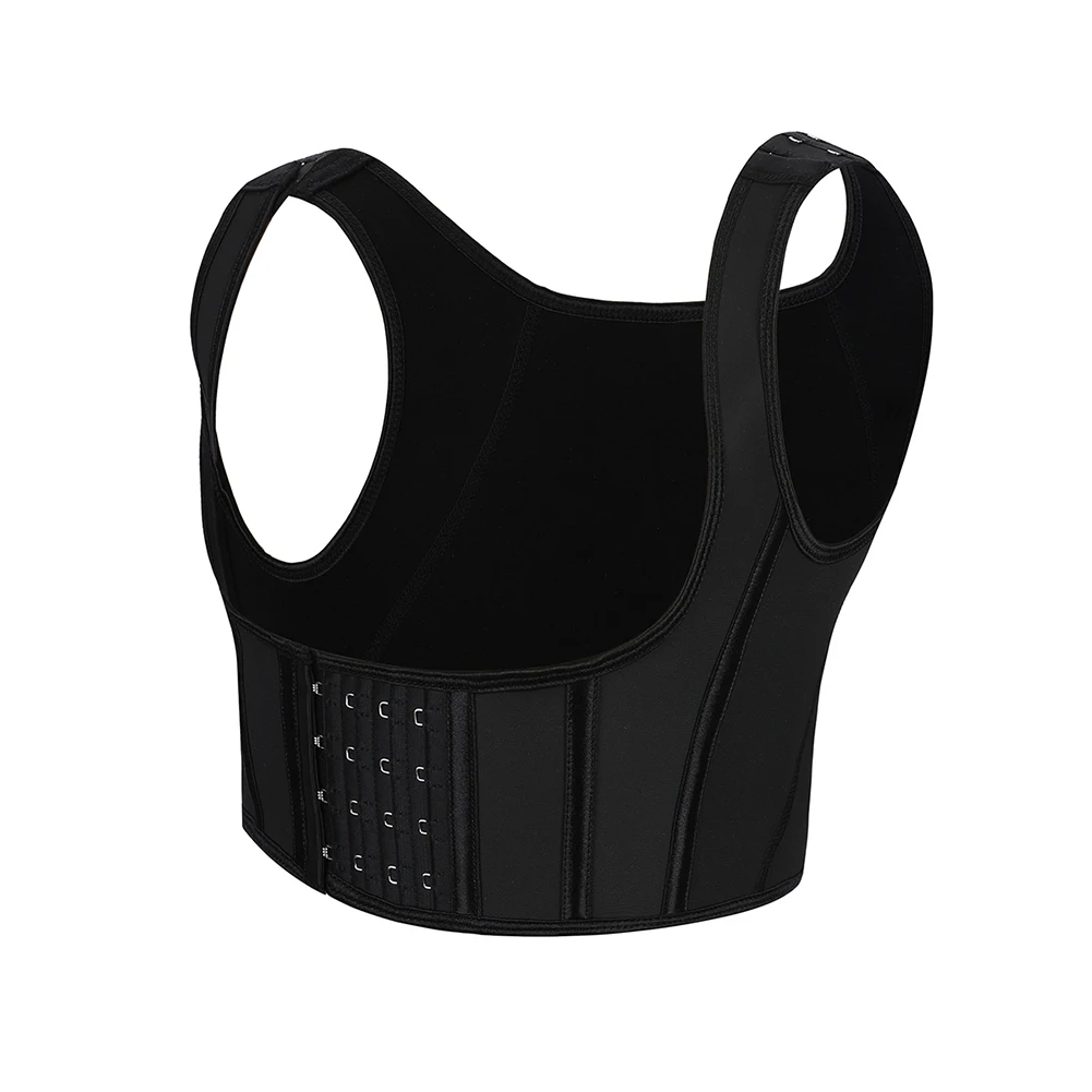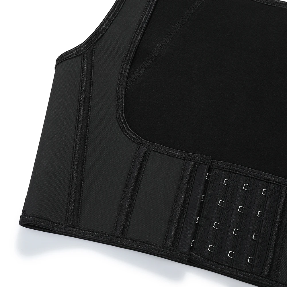 *1. Fabric: cotton, spandex, latex *2. Functions: posture corrector *3. Thickness: thick *4. Steel Bone: 4 *5. Compression: hard *6. Color: Black *7. Size: S-3XL