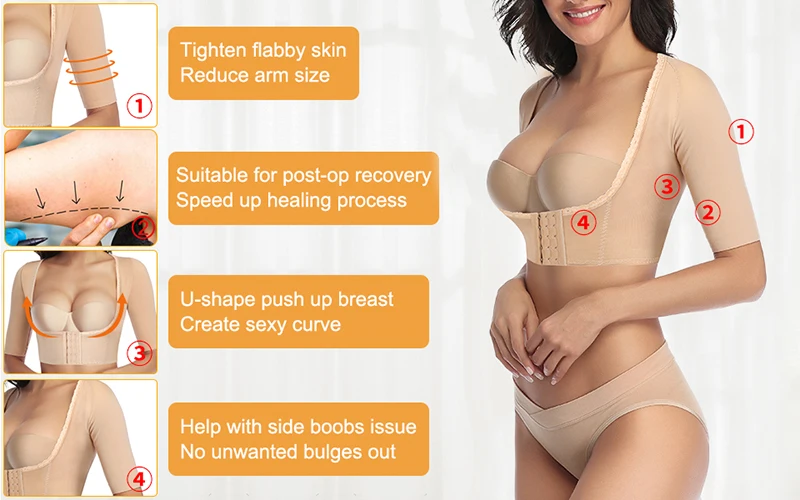 Women's Slimming Underwear Arm Shapers Posture Back Corset Binder Chest Compression Sleeves Posture Corrector Shapewear Tops - 0 Nude / S / United States Find Epic Store