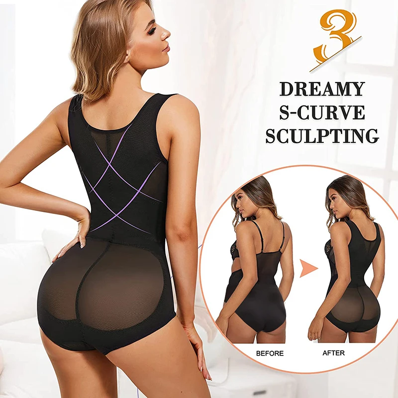 The full body shaper bodysuit with Crotch Buckle Design is easy to adjust with the hook-and-eye closure. Very convenient to go to the toilet.